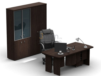 Комплект "Директор" №7159 - столешница: дсп 38 мм, кромка: абс, покрытие: ламинат, стекло: тонированное.